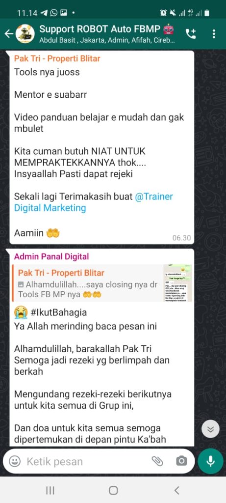 Alhamdulillah sudah banyak yang terbantu dan bisa meningkatkan penjualan setelah menggunakan robot online marketing dan mendapatkan total support dari kami